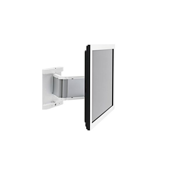 SMS Flatscreen WH 3D; maksimalna teža monitoja: 45 kg, VESA standard 200x100 / 200x200 / 300x200 / 300x300 / 400x200 / 400x300 / 400x400 / 600x200 / 600x300 / 600x400 / 800x400 mm, priporočena velikost monitorja: 37" - 55", obračanje: +/- 90°, nagib: -3°/+9°, oddaljenost od zidu: 123 mm, barva: bela, črna ali siva.
